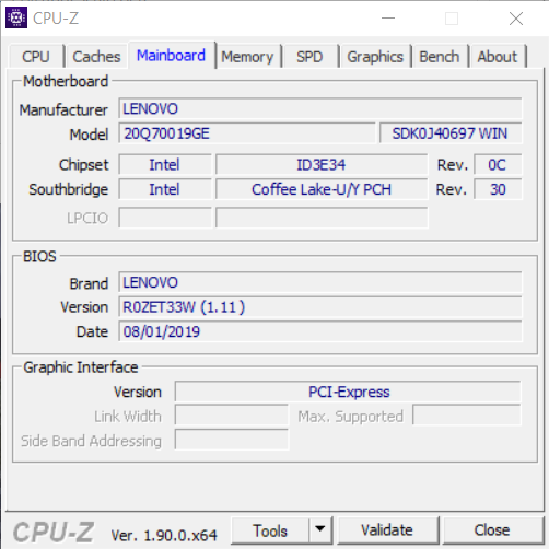 | 83.4 % v7 (old) | 03 / 2019 | Lenovo ThinkPad E590-20NC0003GE i7-8565U, UHD Graphics 620 | 1.9 kg | 19.9 mm | 15.60" | 1920x1080 | |