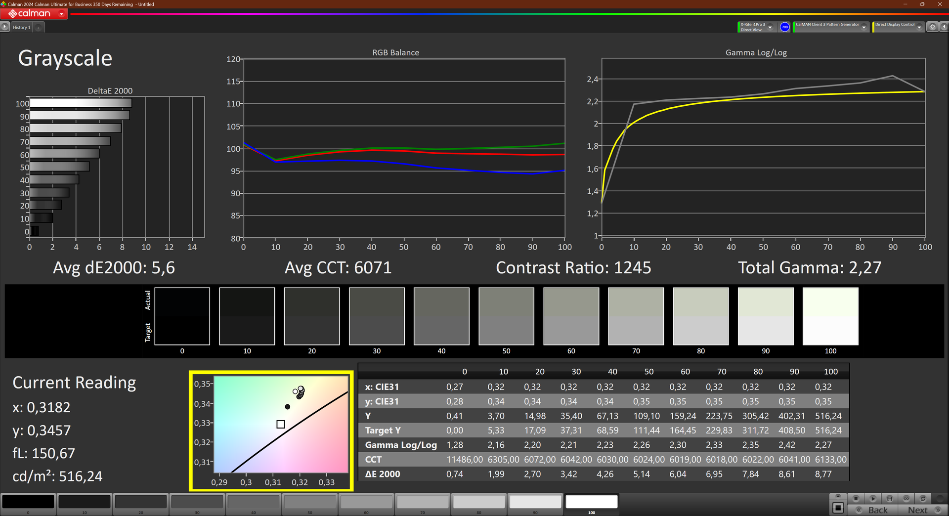 ΔE Greyscale Calman: 5.6 | ∀{0.09-98 Ø5}