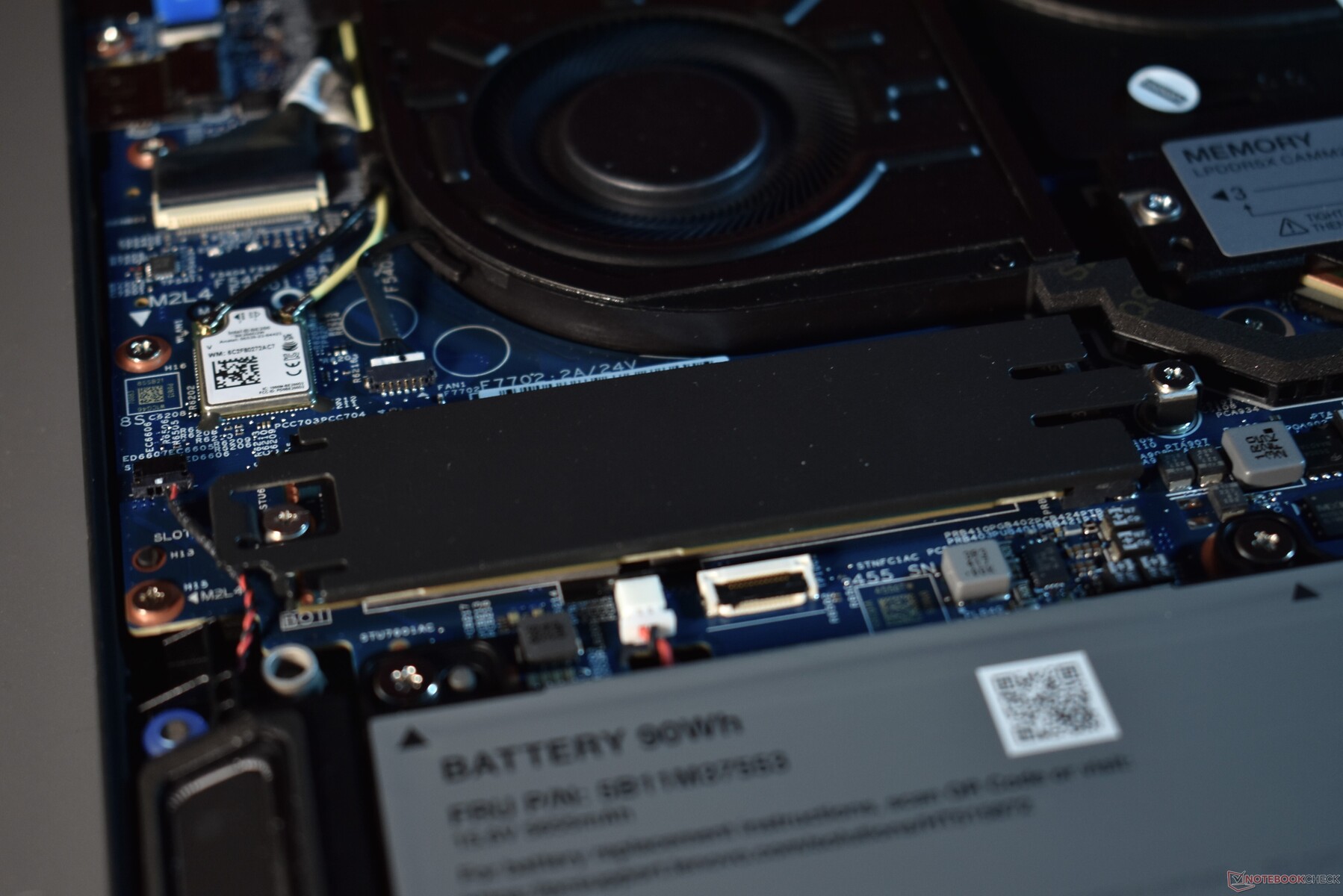 Das Wi-Fi-Modul ist verlötet. WWAN gibt es beim ThinkPad P1 schon seit einigen Jahren nicht mehr, sodass es dafür auch keinen M.2-Steckplatz mehr gibt. Vergleichsweise einfach tauschbar ist der Akku. Lenovo verzichtet hier auf eine kabelgebundene Lösung, der Akku kann einfach ein- und ausgesteckt werden - sowie die Schrauben gelockert sind. Auch hier gibt es einen aufgedruckten QR-Code. Erstmals beim P1 Gen 7 darf der Akku auch während der Garantie vom Endkunden getauscht werden.