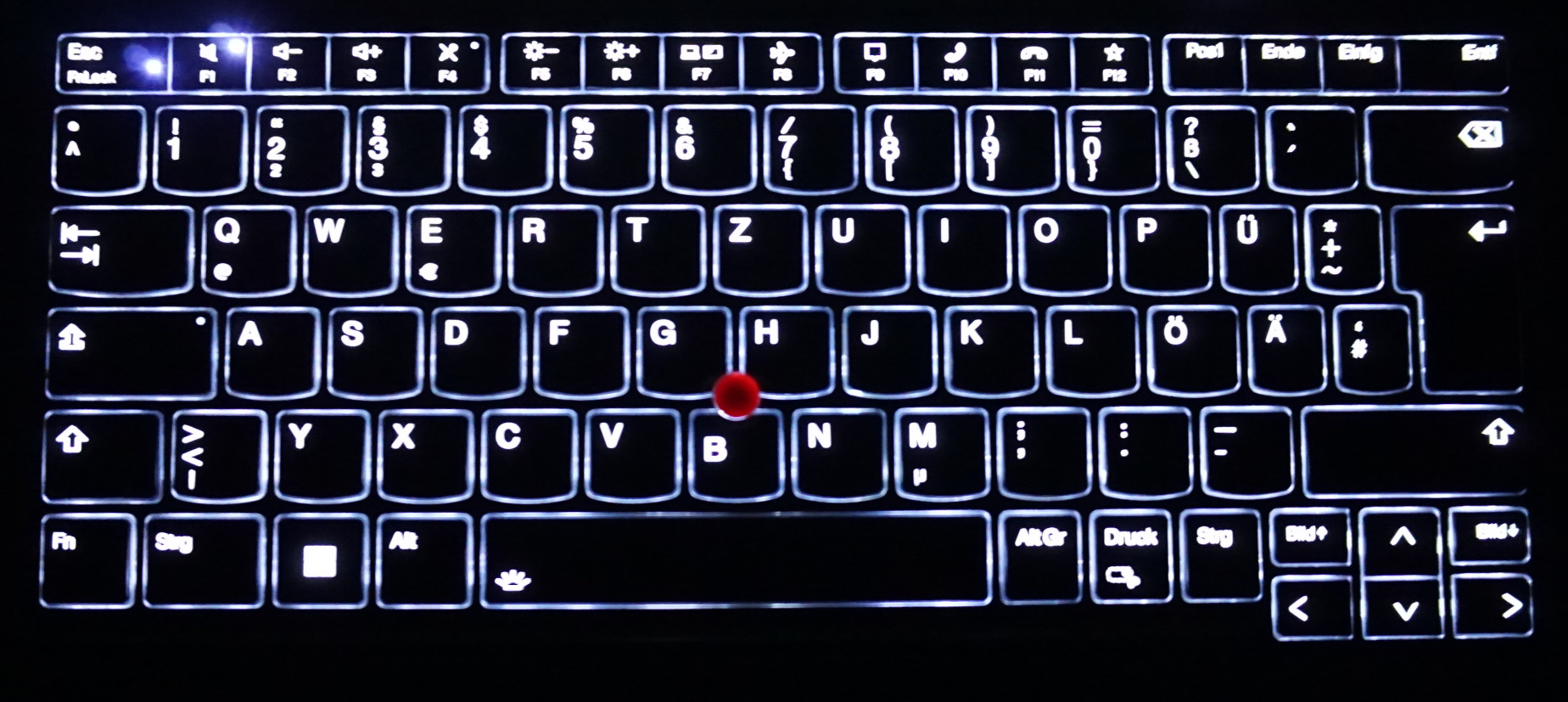 Der Hub von 1,5 mm (unsere Messung) könnte für Vielschreiber vielleicht etwas zu kurz sein. Auch das leichte Nachgeben des Tastaturrahmens ist nicht optimal. Nicht falsch verstehen: Für ein Notebook ist die Tastatur sehr gut, an einem ThinkPad sind die kleinen Schwächen jedoch nicht unbedingt zu erwarten.