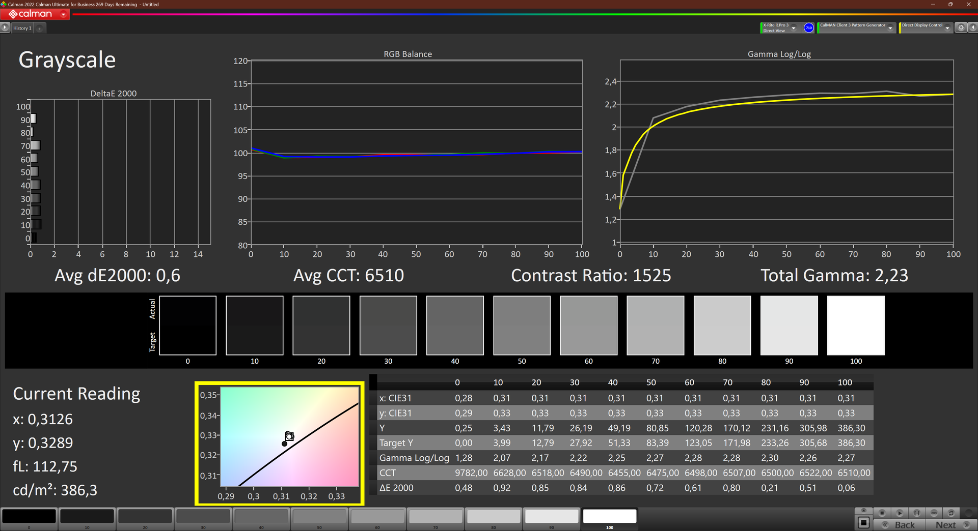 Bereits ab Werk fällt die Darstellung von Farben gut aus. Unsere Messungen zeigen eine Farbabweichung, die nur minimal über dem Wahrnehmbaren liegt. Zudem gilt dies vor allem für einige Grautöne, aber auch dort kaum nennenswert. Eine Kalibrierung verbessert die Darstellung weiter, scheint aber für die allermeisten Nutzer nicht notwendig zu sein. Selbst geschulte Augen werden bereits ohne Kalibrierung keine ernsthaften Unterschiede bei der Farbwiedergabe feststellen können.