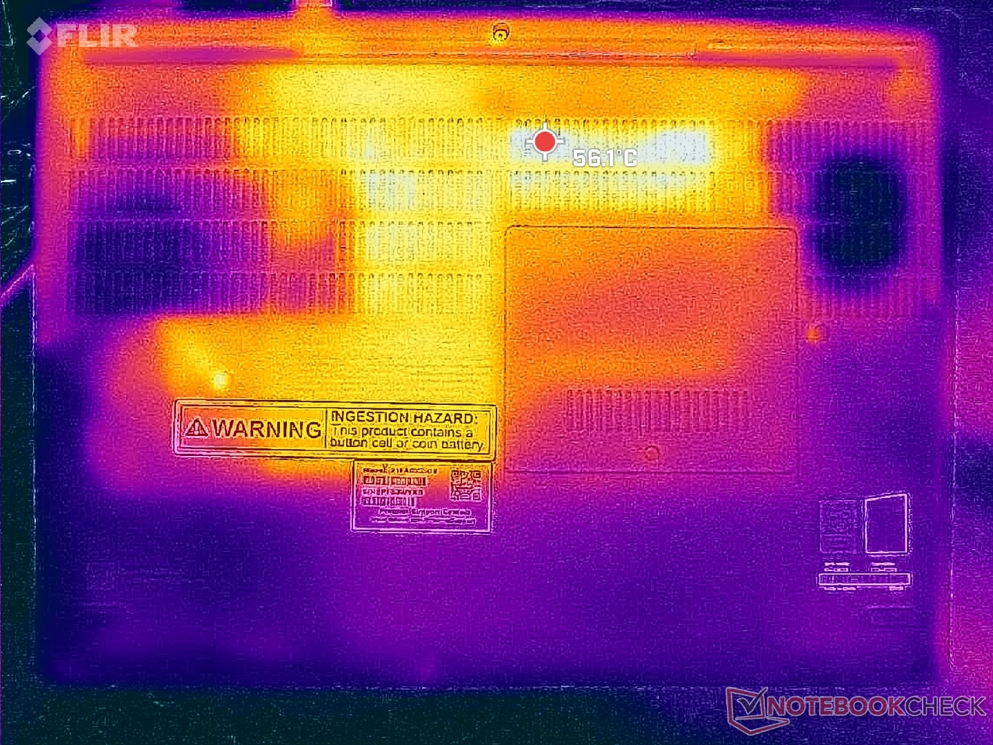 (+) Die Handballen und der Touchpad-Bereich erreichen maximal 35.6 °C und damit die typische Hauttemperatur und fühlen sich daher nicht heiß an.