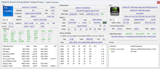 | Lenovo ThinkPad P16 Gen 2 Intel Core i7-14700HX ⎘ NVIDIA RTX 4000 Ada Generation Laptop ⎘ 32 GB RAM, 1024 GB SSD | Listenpreis 3500 USD Geizhals Suche | 3.1 kg | 30.23 mm | 16.00" 2560x1600 189 PPI IPS | |