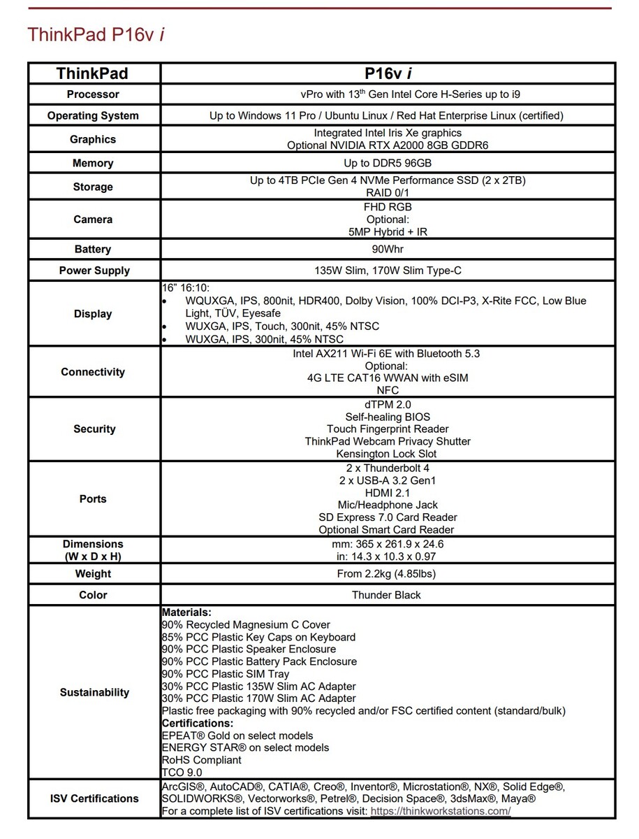 Kein Teil der Ankündigung ist eine AMD-Variante des ThinkPad P16v. Allerdings wird das nun angekündigte Modell explizit als "P16v Gen 1 i" gelistet, es ist also zu erwarten, dass es eine Ryzen-Variante gibt.