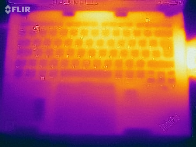 Das Thinkpad erwärmt sich deutlich. Während des Stresstests registrieren wir an mehreren Messpunkten auf der Unterseite Temperaturen deutlich oberhalb von 50 Grad Celsius. Auf den Oberschenkeln sollte das Gerät dann nicht abgestellt werden. Im Leerlauf liegen die Temperaturen im grünen Bereich.