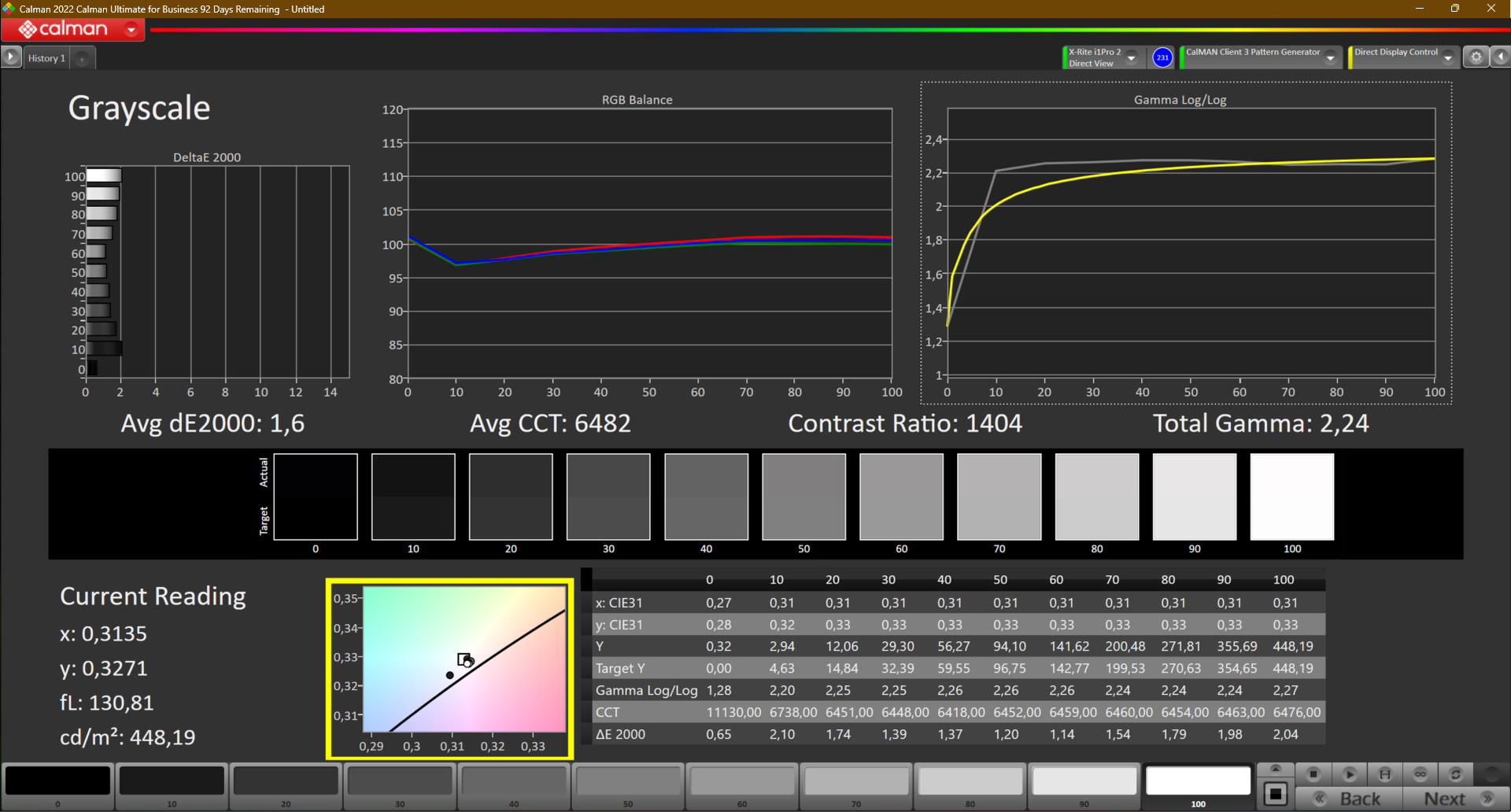 ΔE Greyscale Calman: 1.6 | ∀{0.09-98 Ø5}
