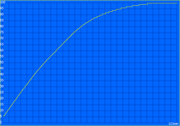 Im Akkubetrieb ist die Leistung prinzipiell vollständig verfügbar, in den ersten Sekunden nach Beginn der Last bleibt der CPU-Verbrauch jedoch bei 16 Watt, bevor er dann auf die normalen 30 Watt ansteigt und sich dann ebenfalls bei 25 Watt einpendelt.