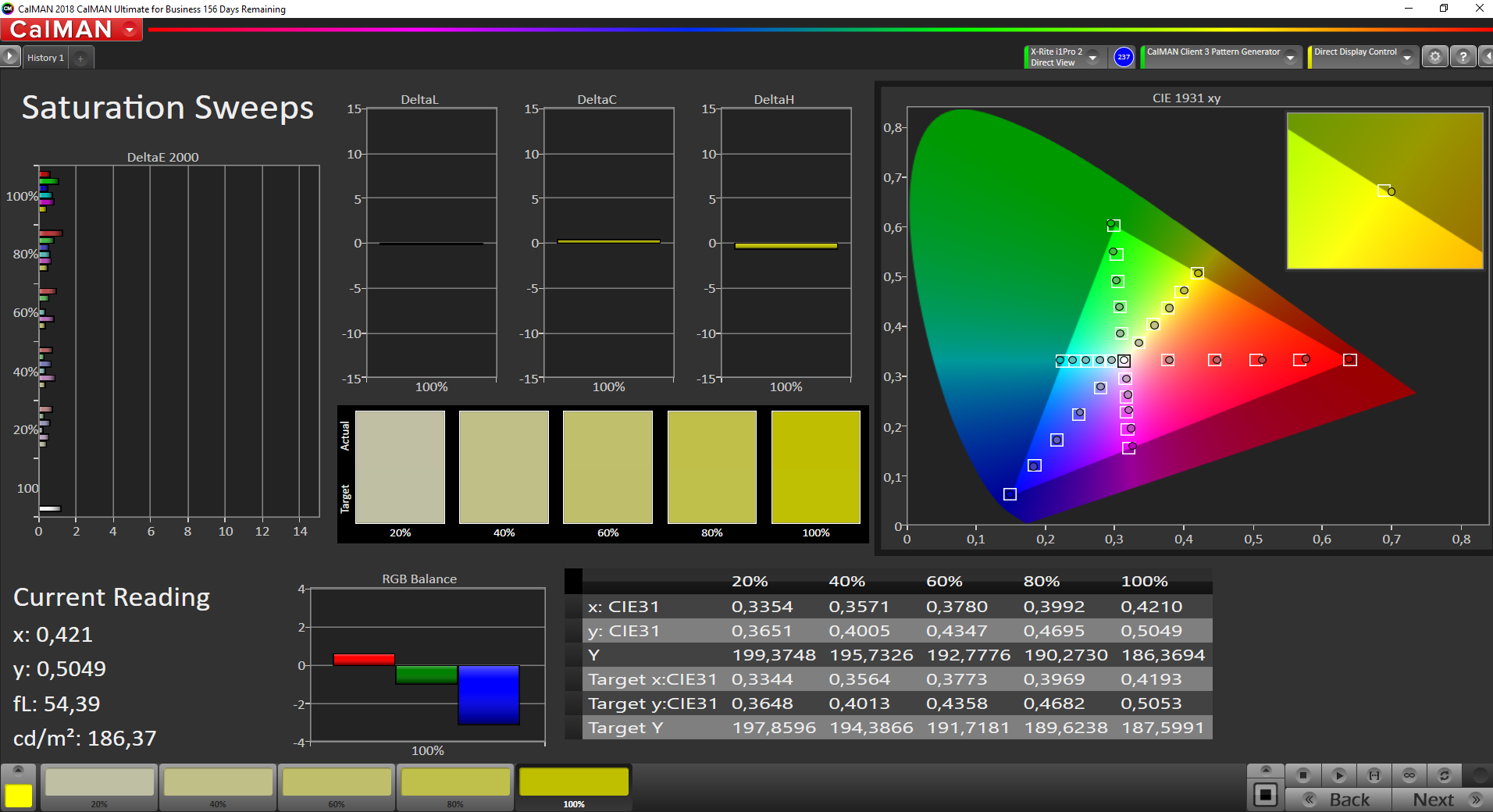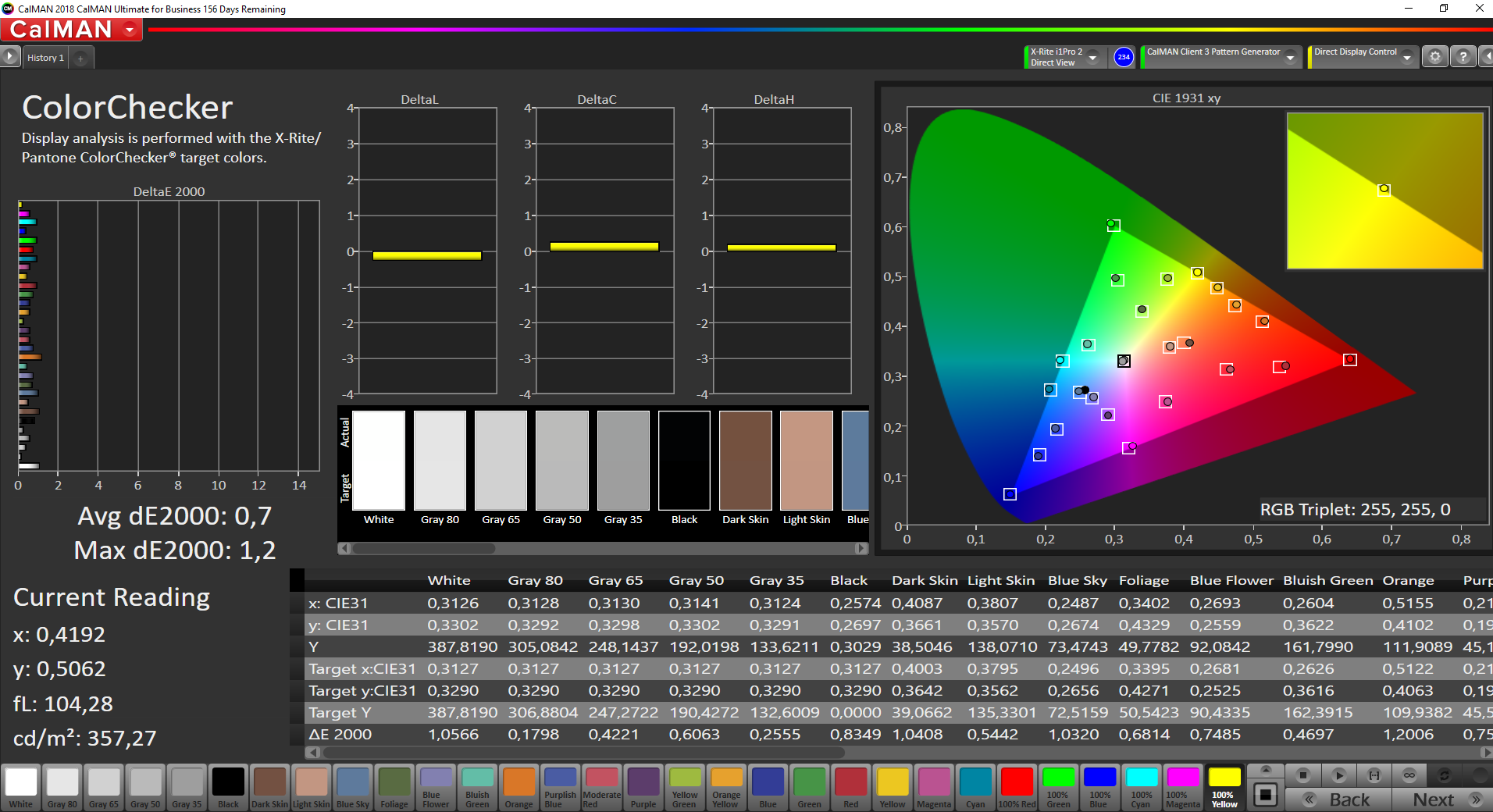 Bereits im Auslieferungszustand sind die Ergebnisse für die Graustufen und die Farben vollkommen in Ordnung für ein Business-Gerät. Vor allem die akkurate Farbdarstellung überrascht uns positiv, da bereits alle Werte unter der wichtigen Marke von 3 liegen. Das volle Potenzial wird aber erst nach einer Kalibrierung ausgeschöpft, denn nun sind auch die Graustufen im Soll und die etwas zu kühle Farbtemperatur ist korrigiert.