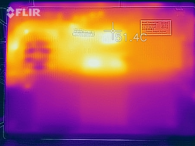 (-) Auf der Unterseite messen wir eine maximalen Wert von 49.6 °C (im Vergleich zum Durchschnitt von 36.8 °C).