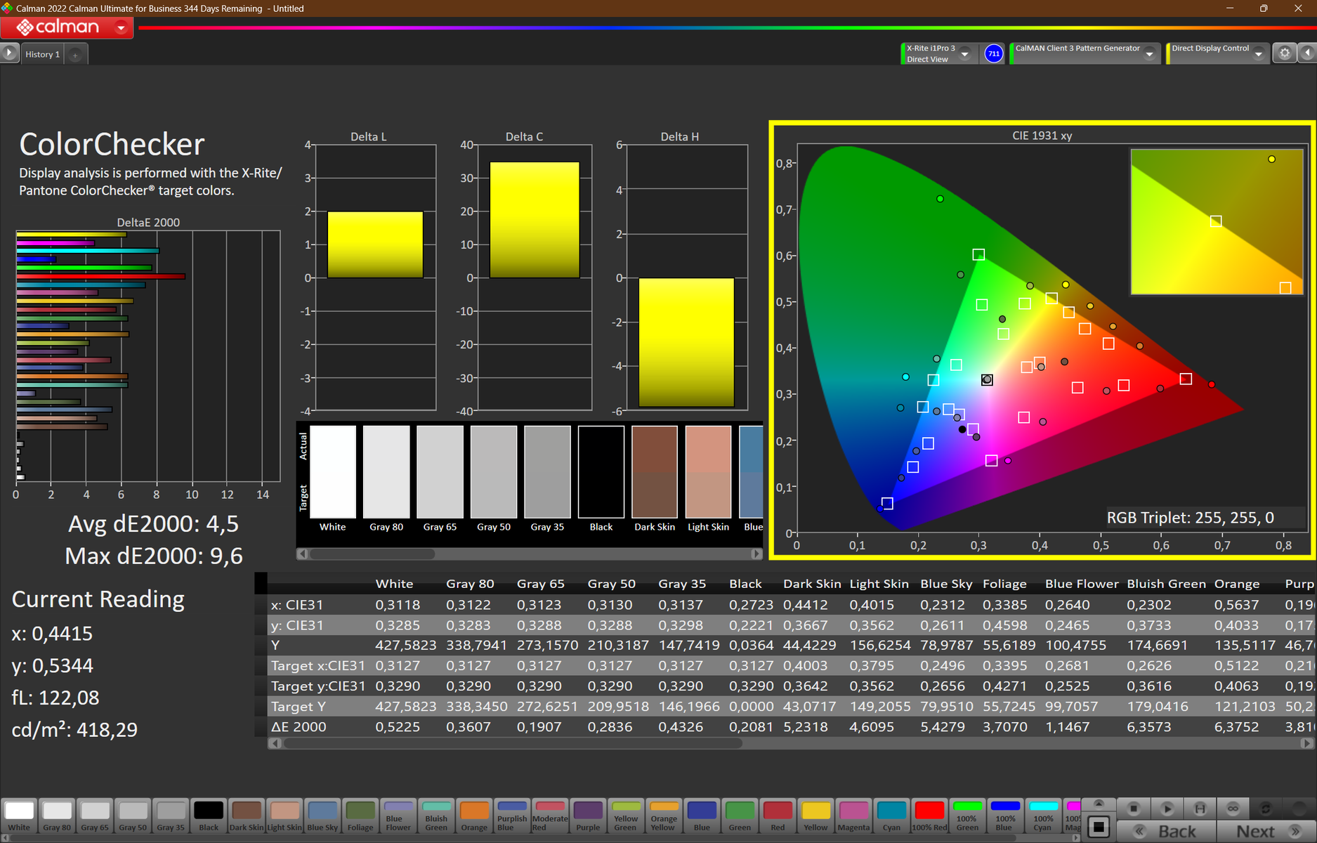 ΔE ColorChecker Calman: 4.5 | ∀{0.5-29.43 Ø4.78}