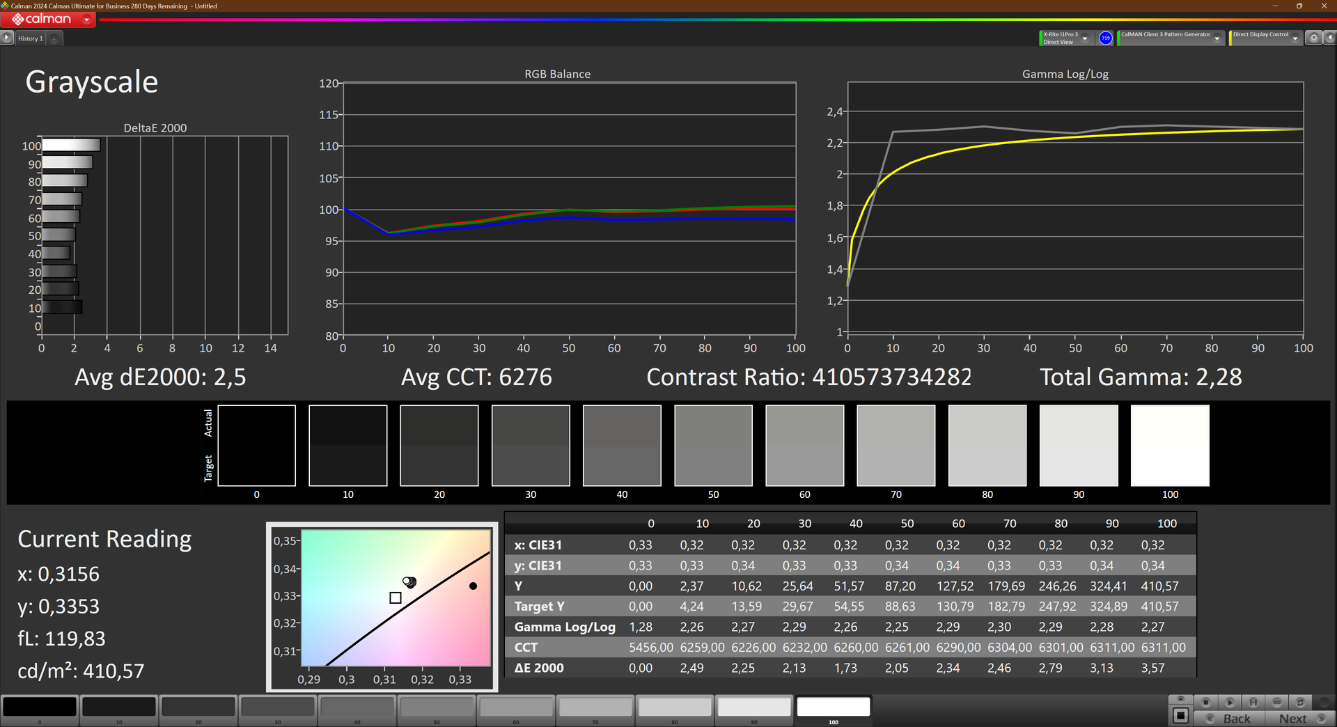 ΔE Greyscale Calman: 2.3 | ∀{0.09-98 Ø5}