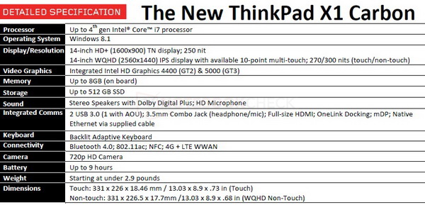 ThinkPad X1 Carbon: im ersten Quartal 2014 für rund 1370 Euro.