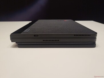 Im geschlossenen Zustand ist das X1 Fold Gen 2 wesentlich dünner als das erste Modell - Lenovo hat das Scharnier-Design überarbeitet, sodass zwischen den beiden Gehäusehälften nun keine Lücke mehr ist. Das ist optisch schön und eben auch dünner, resultiert aber in einer wichtigen Einschränkung: Die Bluetooth-Tastatur kann nicht mehr im Gerät verstaut werden. Stattdessen muss sie beim Transport nun magnetisch an der Unterseite befestigt werden, eine deutlich weniger elegante Methode im Vergleich zum Asus ZenBook 17 Fold.