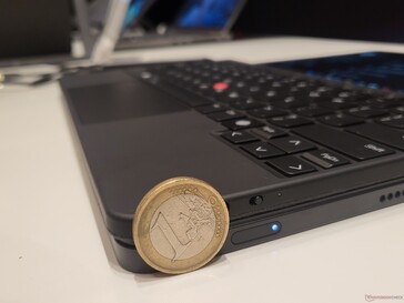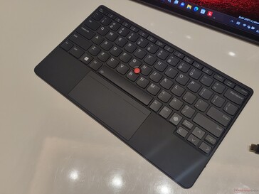 Eindeutig eine Verbesserung ist die Tastatur an sich: War diese beim Vorgänger noch eine Art Notlösung, hat das X1 Fold 16 nun eine richtige ThinkPad-Tastatur, die vom Layout und Tippgefühl etwa dem ThinkPad X1 Nano entspricht. Auch den TrackPoint konnte Lenovo durch den Zugewinn an Platz integrieren, wobei dieser auf die dedizierten Tasten verzichtet, stattdessen gibt es eine Lösung mit einem haptischen Trackpad und integrierten Buttons, wie beim ThinkPad Z13. Die Tastatur verfügt über ein zweistufiges Backlight, anders als das Keyboard des ZenBook Fold. Geladen wird die Tastatur per USB-C.