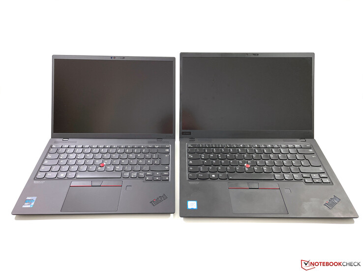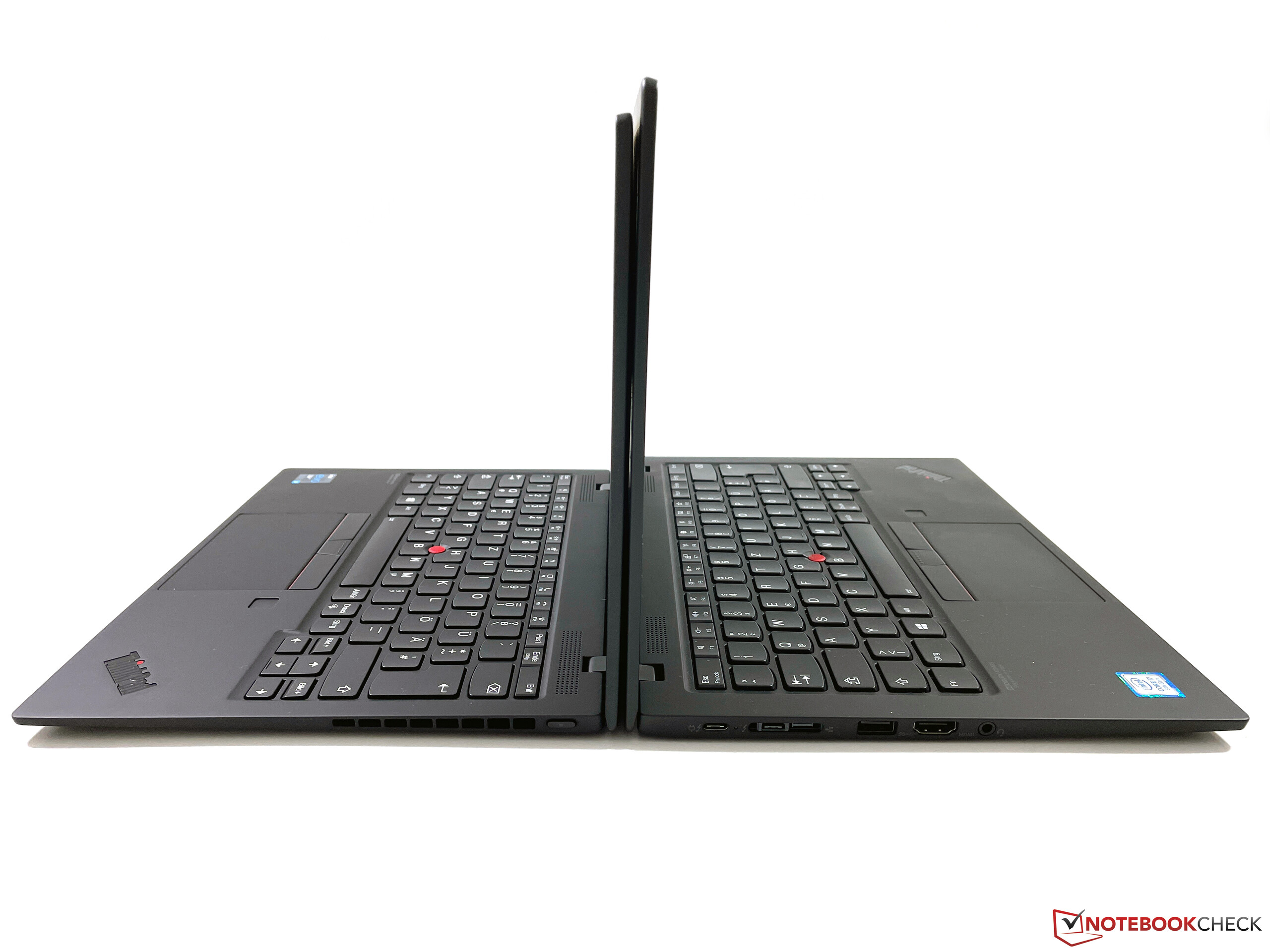 Obwohl es kein direkter Konkurrent ist, wenn man sich die Displaygröße ansieht, wollen wir das neue X1 Nano dennoch kurz mit dem X1 Carbon G7 vergleichen. Vom Gewicht her ist das X1 Carbon tatsächlich nur rund 130 Gramm schwerer, und auch bei der Bauhöhe nehmen sich die beiden nicht viel. Bei der Stellfläche hingegen zeigt sich ein großer Unterschied. Das X1 Carbon ist zwar bereits sehr kompakt für ein 14-Zoll-Gerät, doch das X1 Nano ist noch einmal spürbar kleiner.