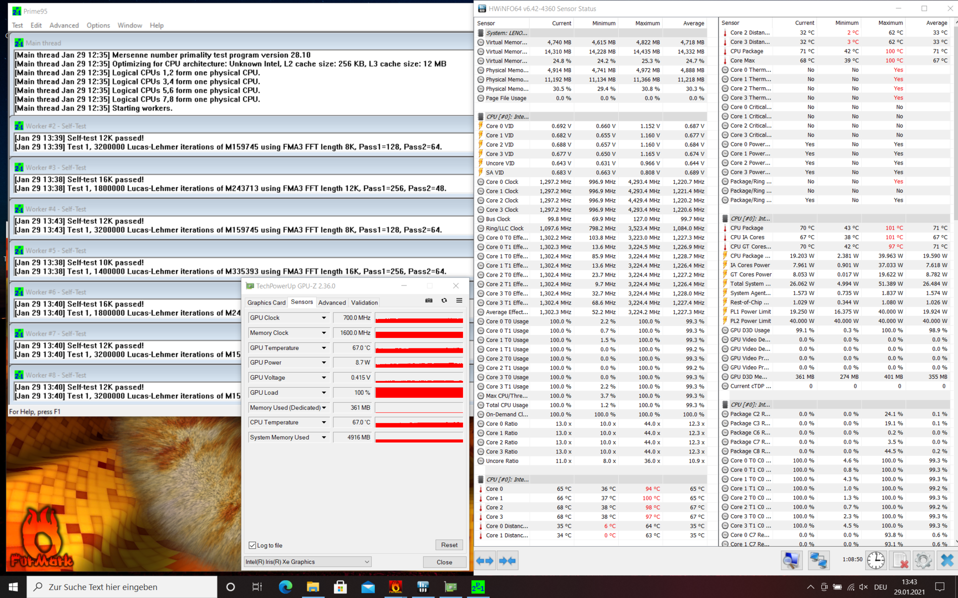 Unter Last liegt der maximale Verbrauch des gesamten Systems zunächst bei 57 Watt, nach wenigen Minuten pendelt sich dieser Wert aber bei rund 27 Watt ein. Das mitgelieferte 65-Watt-Netzteil, welches erstmals mit dem ThinkPad X1 Carbon G8 eingeführt wurde, ist daher vollkommen ausreichend dimensioniert.