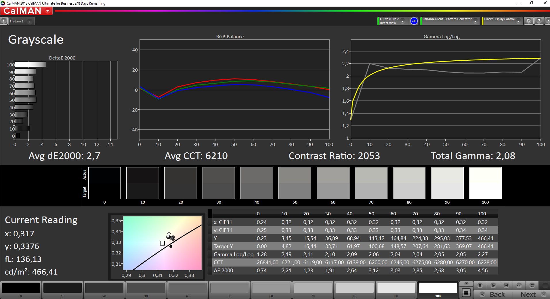 ΔE Greyscale Calman: 2.7 | ∀{0.09-98 Ø5}