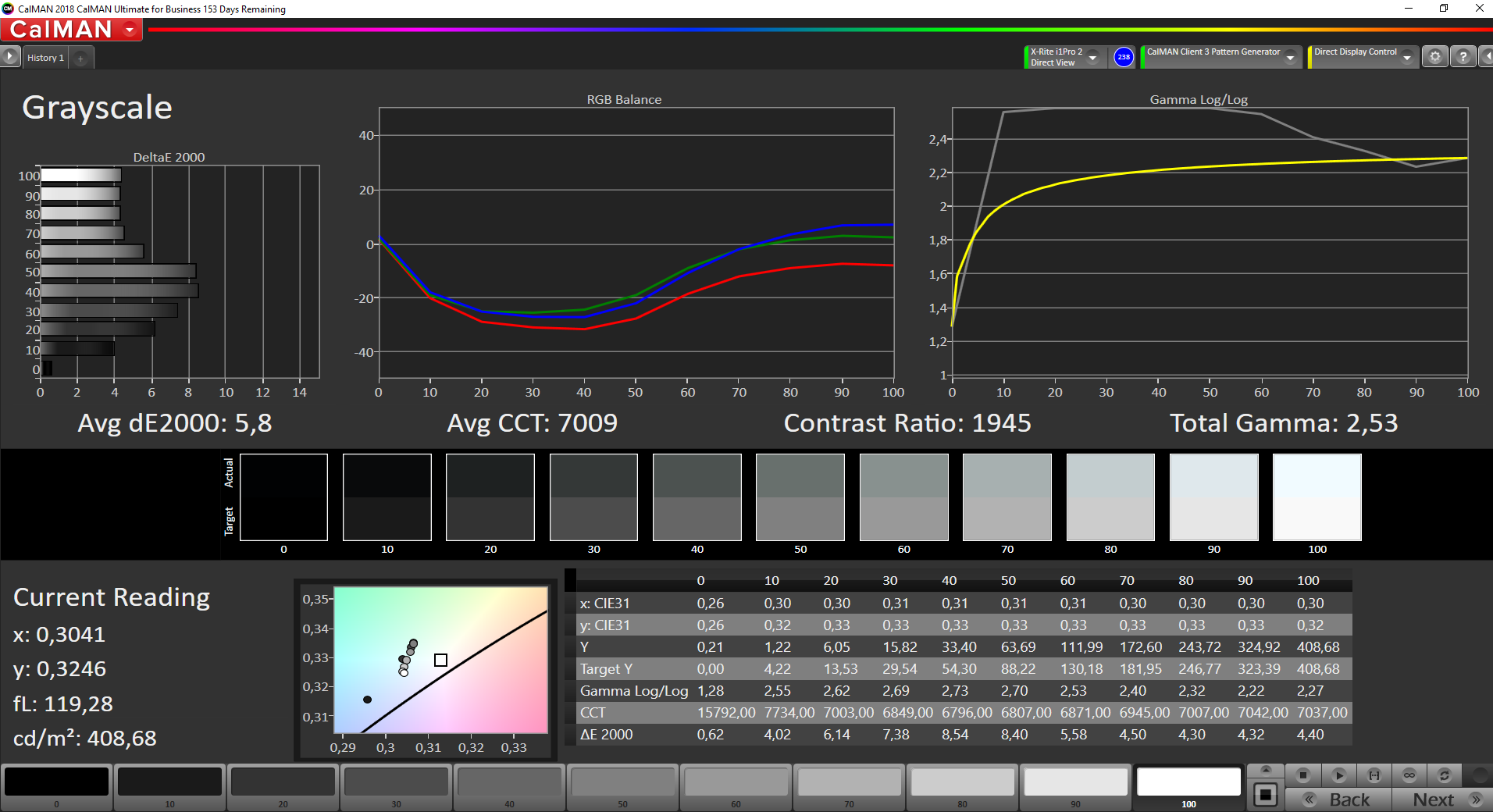 ΔE Greyscale Calman: 5.8 | ∀{0.09-98 Ø5}