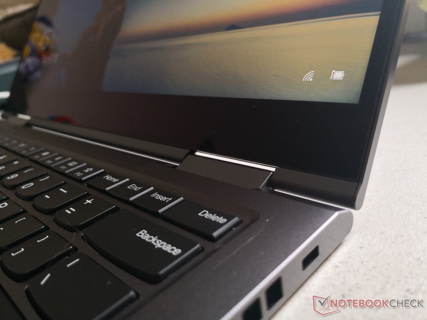 Die Scharniere sind fester als beim XPS 13 2-in-1 oder beim HP EliteBook x360 1040. Beim Tappen auf das Display bewegt sich dieses deutlich weniger als bei den meisten anderen Touchscreengeräten.