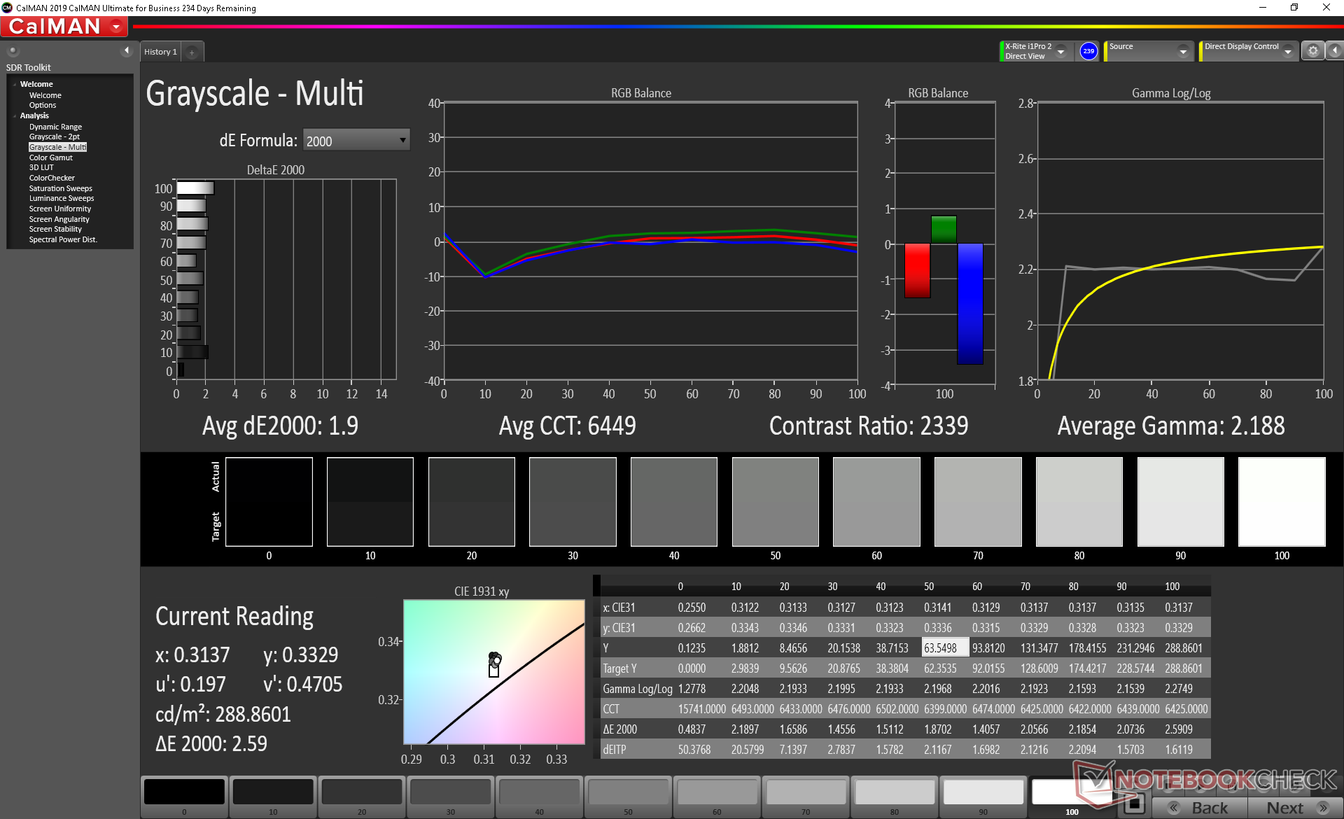 ΔE Greyscale Calman: 1.7 | ∀{0.09-98 Ø5}