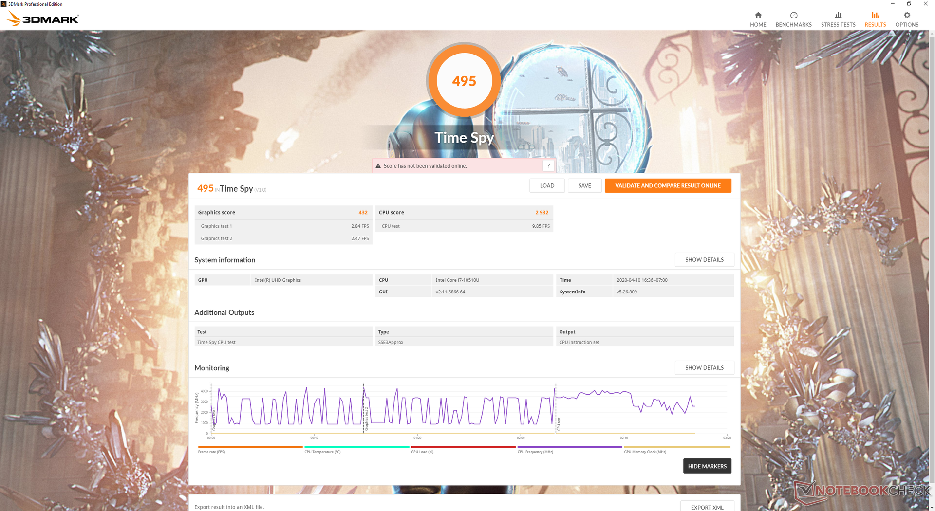 | 3DMark Time Spy Score | 495 Punkte | |
