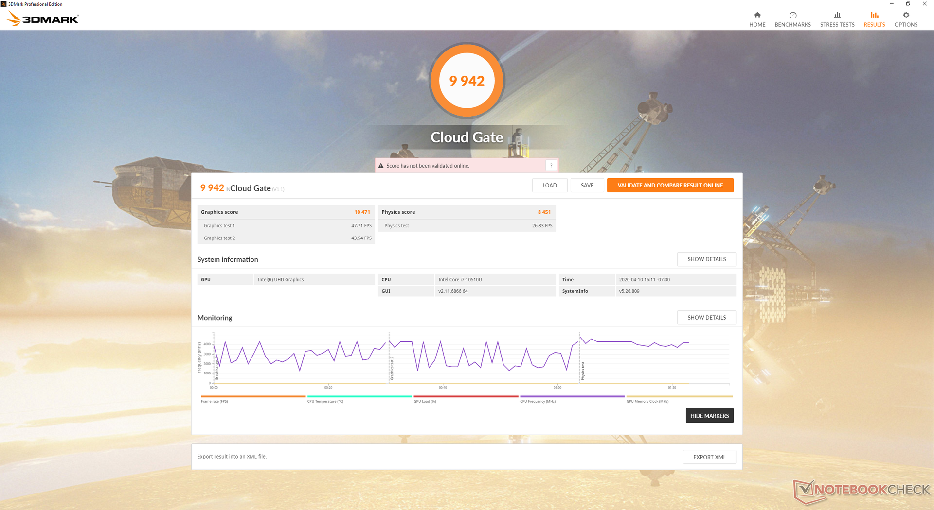 | 3DMark Cloud Gate Standard Score | 9942 Punkte | |
