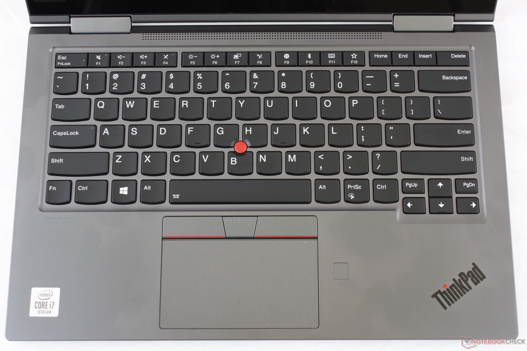 Die Tastatur mit Hintergrundbeleuchtung gleicht der des ThinkPad X1 Carbon haargenau. ThinkPad-Tastaturen gehören immer noch zu unseren absoluten Favoriten. Sie eignen sich gut für die Schreibarbeit und auf ihre Qualität kann man sich im Vergleich zu den sich ständig verändernden Tastaturen der Dell-XPS-Serie oder anderer preiswerter Mittelklassealternativen immer verlassen. Selbst die Tastatur von Lenovos eigenem Yoga C940 hat einen kürzeren Hub und fühlt sich schwammiger an als unser ThinkPad. Hier sind die Tasten fest, haben kaum Spiel und bieten ein einheitliches Feedback. Was uns etwas stört, ist, dass die Tasten 'Bild rauf' und 'Bild runter' sowie die Pfeiltasten alle zu klein sind und eng zusammen liegen. Außerdem lässt sich die Tastatur nicht wie beim ThinkPad T tauschen.