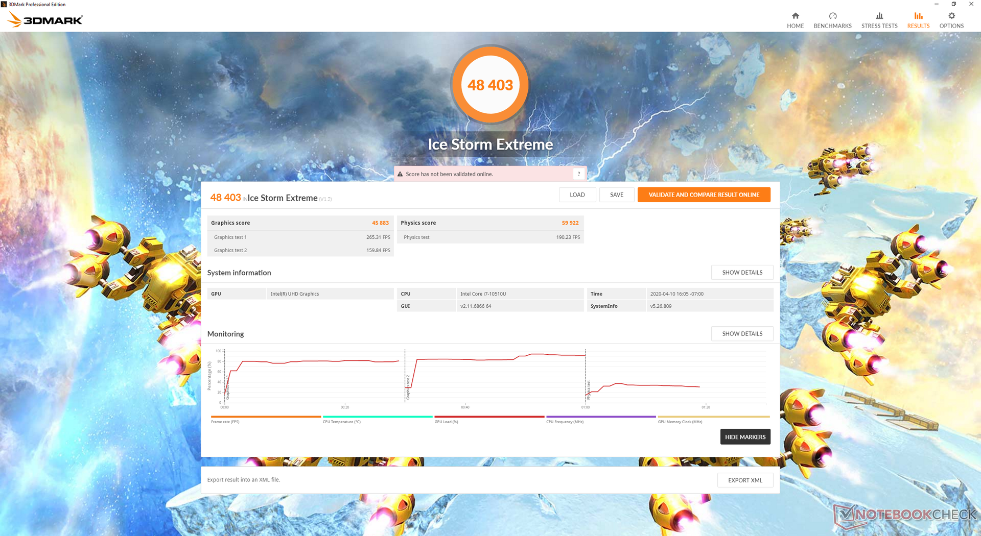 Der Akkumodus hat keinen Einfluss auf die Leistung. Der 3DMark 11 im Akkumodus ergibt ähnliche Physics- und Graphics-Ergebnisse wie davor.