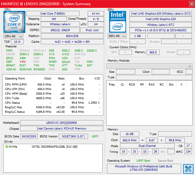 | Lenovo ThinkPad X390 Yoga-20NQS05R00 i7-8565U, UHD Graphics 620, Intel SSD Pro 7600p SSDPEKKF512G8L, IPS LED, 1920x1080, 13.3" | Lenovo ThinkPad X380 Yoga 20LJS02W00 i5-8550U, UHD Graphics 620, Samsung SSD PM981 MZVLB512HAJQ, IPS, 1920x1080, 13.3" | HP EliteBook x360 1030 G3 i5-8250U, UHD Graphics 620, Samsung PM871b MZNLN128HAHQ, IPS, 1920x1080, 13.3" | Dell Latitude 7390 2-in-1 i7-8650U, UHD Graphics 620, SK hynix PC401 NVMe 500 GB, IPS, 1920x1080, 13.3" | Lenovo ThinkPad X390-20Q1S02M00 i5-8265U, UHD Graphics 620, Intel SSD Pro 7600p SSDPEKKF512G8L, IPS LED, 1920x1080, 13.3" | Lenovo ThinkPad X1 Yoga 2018-20LD0015US i5-8250U, UHD Graphics 620, Samsung SSD PM981 MZVLB512HAJQ, IPS, 1920x1080, 14" | Durchschnittliche Intel UHD Graphics 620 | Durchschnitt der Klasse Convertible | |