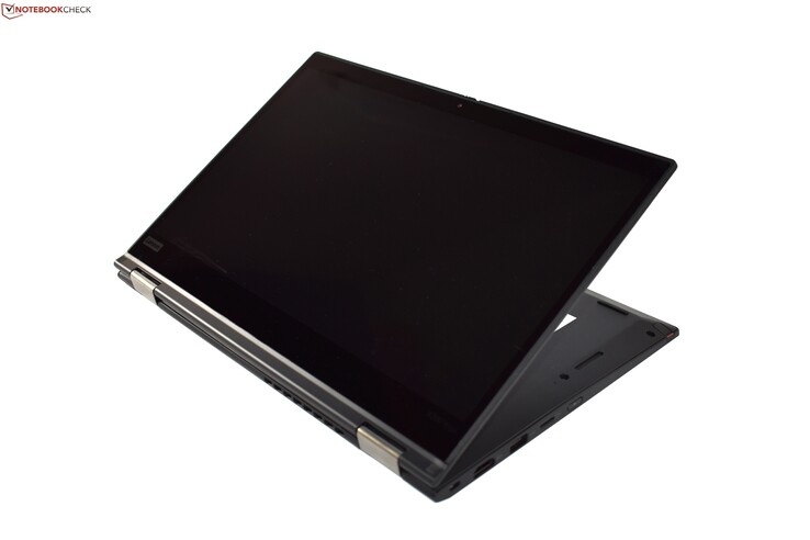 Verglichen mit dem ThinkPad X380 Yoga gibt es beim X390 Yoga einige Fortschritte bei Abmessungen und Gewicht. Das neuere Modell ist etwa 100 Gramm leichter, zwei Millimeter dünner und auch etwas kompakter, wodurch natürlich auch der Displayrahmen leicht geschrumpft ist (Screen-to-Body-Ratio X380 Yoga: 69,9 %; X390 Yoga: 71,7 %). Das macht das Handling des ThinkPad X390 Yoga etwas angenehmer, insbesondere natürlich im Tablet-Modus. Verglichen mit den direkten Konkurrenten mit 13,3-Zoll-Display hat das Lenovo ThinkPad Laptop aber das Nachsehen bei der Größe, sowohl das Dell Latitude 7390 2-in-1 als auch das HP EliteBook x360 1030 G3 sind kompakter.