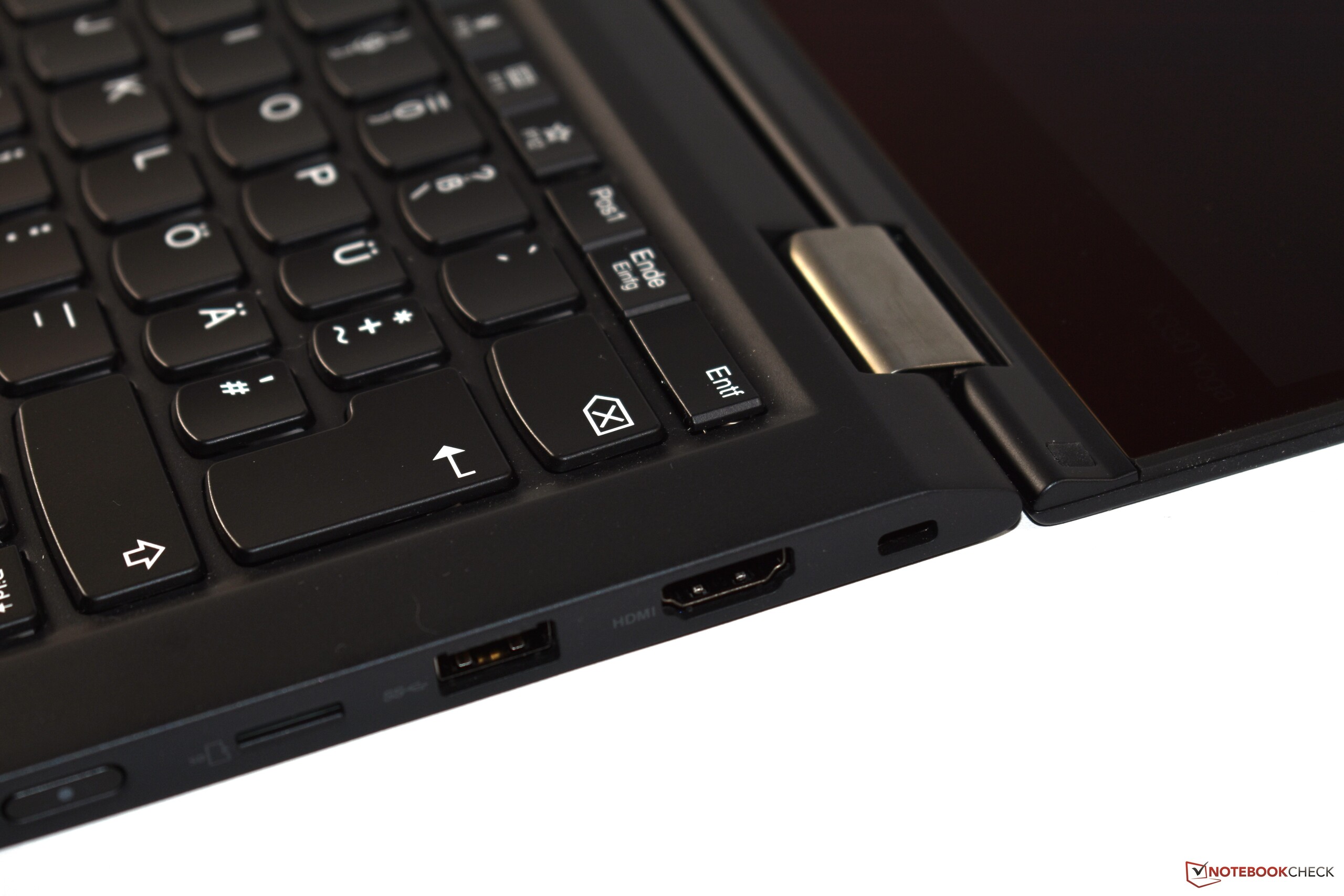 Wie sein Vorgängermodell hat auch das ThinkPad X390 Yoga einen microSD-Kartenleser auf der rechten Seite des Gehäuses. Dass Lenovo bei einem kompakten Convertible wie dem X390 Yoga keinen SD-Kartenslot in voller Größe verbaut, können wir eher verschmerzen als beispielsweise beim größeren ThinkPad T490. Zudem ist es positiv, dass der Kartenleser während der Nutzung einfach zugänglich ist, was zum Beispiel beim normalen ThinkPad X390 nicht der Fall ist.