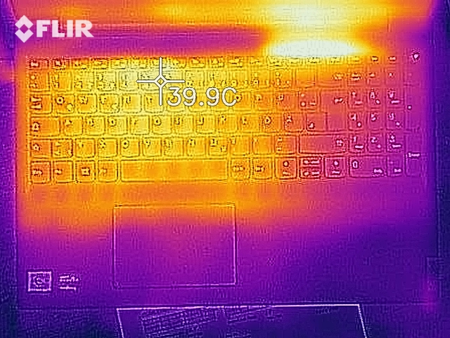 (+) Die Handballen und der Touchpad-Bereich sind mit gemessenen 24.9 °C kühler als die typische Hauttemperatur und fühlen sich dadurch kühl an.