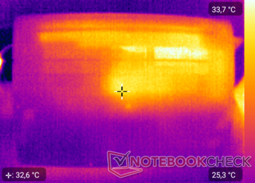 (±) Auf der Unterseite messen wir eine maximalen Wert von 41.1 °C (im Vergleich zum Durchschnitt von 36.8 °C).