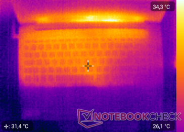 (+) Die Handballen und der Touchpad-Bereich sind mit gemessenen 27.7 °C kühler als die typische Hauttemperatur und fühlen sich dadurch kühl an.