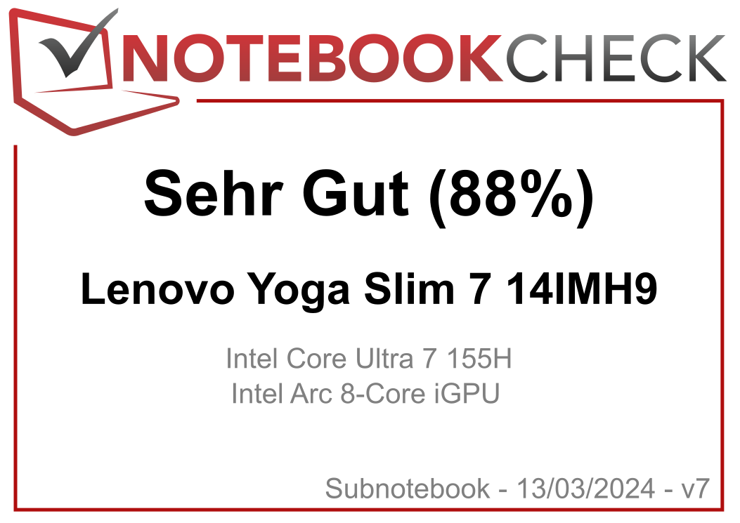 | 88.3 % v7 (old) | 03 / 2024 | Lenovo Yoga Slim 7 14IMH9 Ultra 7 155H, Arc 8-Core | 1.4 kg | 14.9 mm | 14.00" | 1920x1200 | |