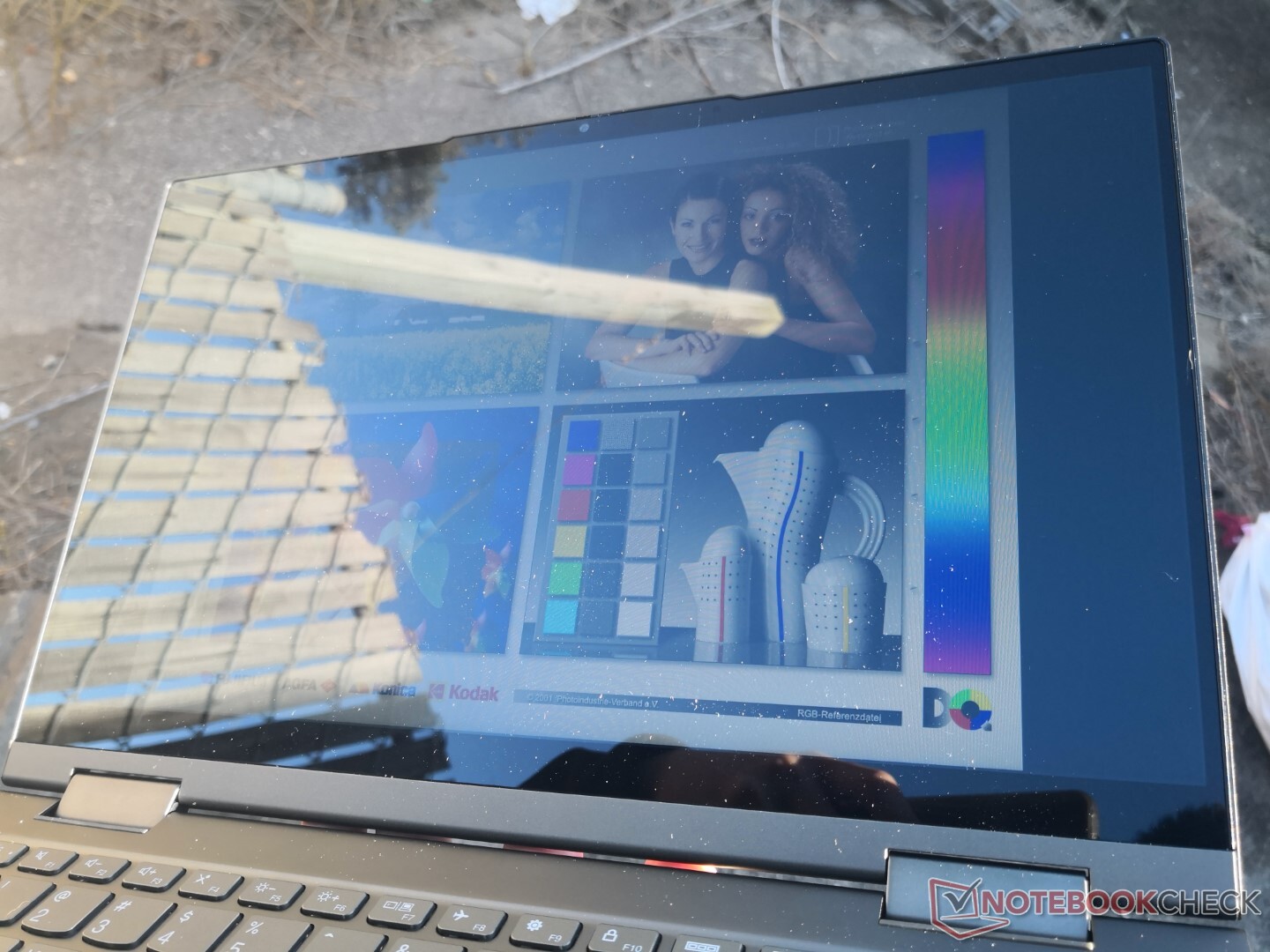 Die Sichtbarkeit im Freien ist für seine Kategorie durchschnittlich. Alternativen wie das Dell XPS 13 oder das HP EliteBook x360 1040 bieten hellere Bildschirme mit bis zu 400 Nits oder sogar 1000 Nits für letzteres, sind aber auch teurer.