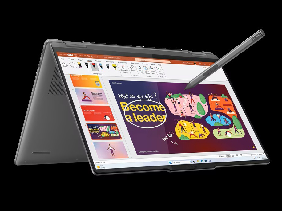 EN→DEA 16-inch laptop is a desktop-PC alternative (commonly called a desktop replacement) by definition, so we've always been bemused by 16-inch convertibles: They're too bulky and heavy for use as tablets, so they spend most of their time in laptop mode, perhaps occasionally propped up for a presentation or folded flat on a desk for marking up a document with a stylus. Lenovo's Yoga 7i 16 Gen 9 (starts at $818.10; $899.99 as tested) is a big-screen 2-in-1 that updates last year's model with Intel's new Core Ultra silicon under the hood and Microsoft's new Copilot key on the keyboard. It's about as fine as an affordable large convertible gets, but it's more of a niche player than a mainstream option.