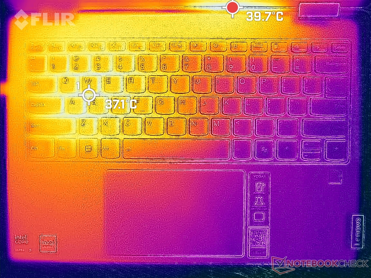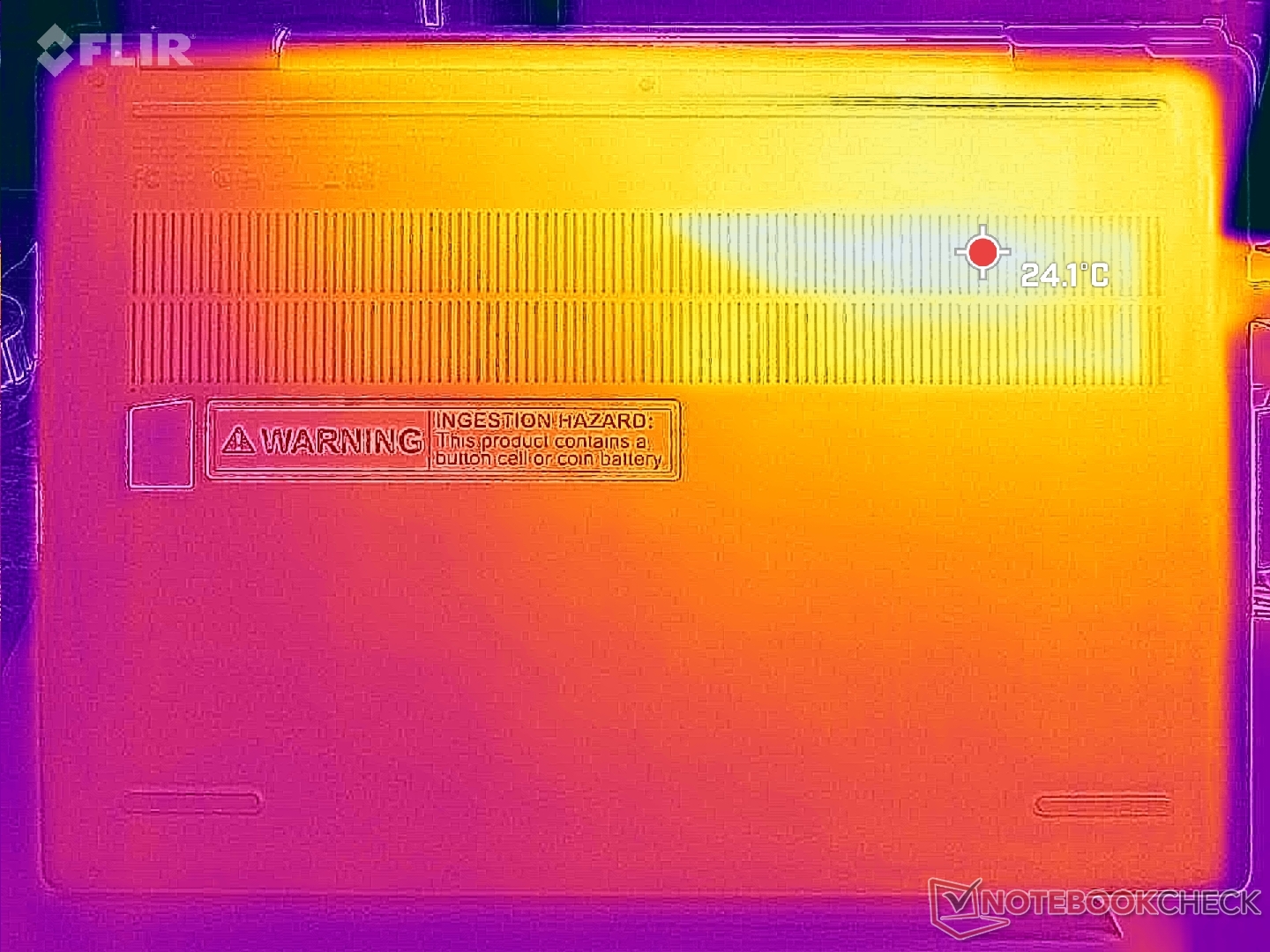 (+) Die Handballen und der Touchpad-Bereich sind mit gemessenen 31.6 °C kühler als die typische Hauttemperatur und fühlen sich dadurch kühl an.