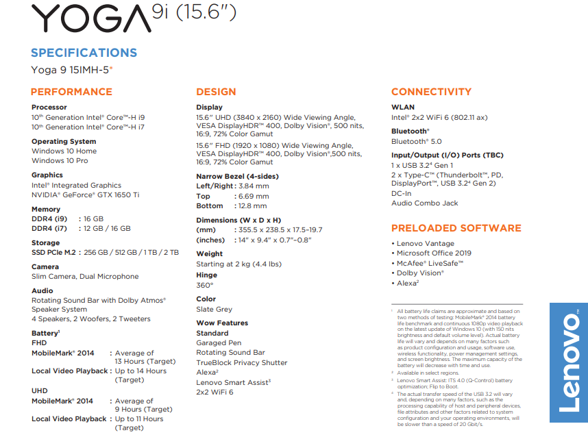 Das trifft auch auf die neuen High-End Yoga Convertibles zu, wobei Lenovo in diesem Jahr das Namenschema ändert: Als Ersatz für das Yoga C940 gibt es kein Yoga C950, sondern das Lenovo Yoga 9i. Wie beim Vorgänger wird es weiterhin 14-Zoll- und 15,6-Zoll-Modelle geben.