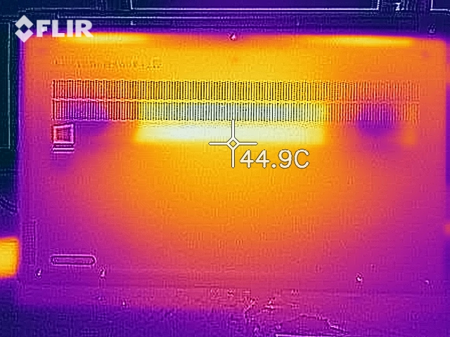 Das Gerät erwärmt sich bestenfalls moderat. Während des Stresstests registrieren wir nur an zwei Messpunkten Temperaturen im oberen 30-Grad-Celsius-Bereich. Etwas geringer fällt die Erwärmung bei der Durchführung des Witcher-3-Tests aus. Im Alltagsbetrieb bewegen sich die Temperaturen im grünen Bereich.