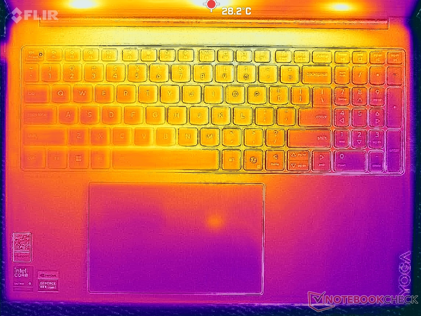 (+) Die Handballen und der Touchpad-Bereich sind mit gemessenen 26.2 °C kühler als die typische Hauttemperatur und fühlen sich dadurch kühl an.