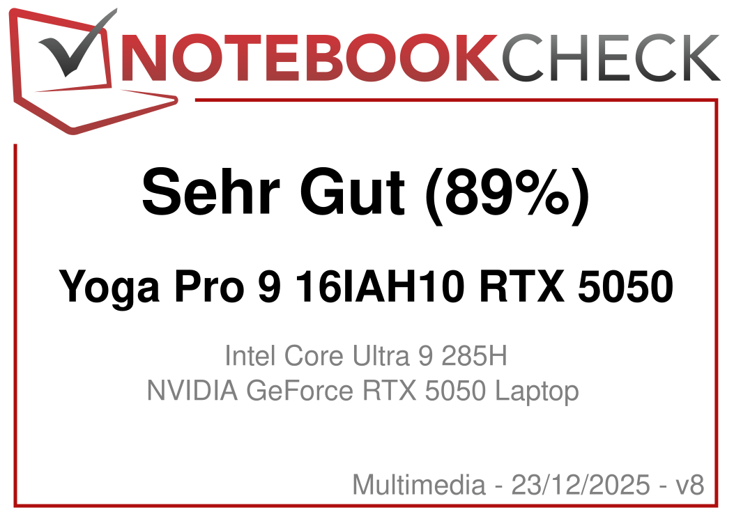 | Lenovo Yoga Pro 9 16IAH10 RTX 5050 Intel Core Ultra 9 285H ⎘ NVIDIA GeForce RTX 5050 Laptop ⎘ 32 GB RAM, 1024 GB SSD | Amazon: Bestpreis 2058€ Cyberport.at 2. 2097€ Cyberport Stores Österreich 3. 2199€ Media Markt.at | 2 kg | 17.9 mm | 16.00" 2880x1800 212 PPI OLED | |