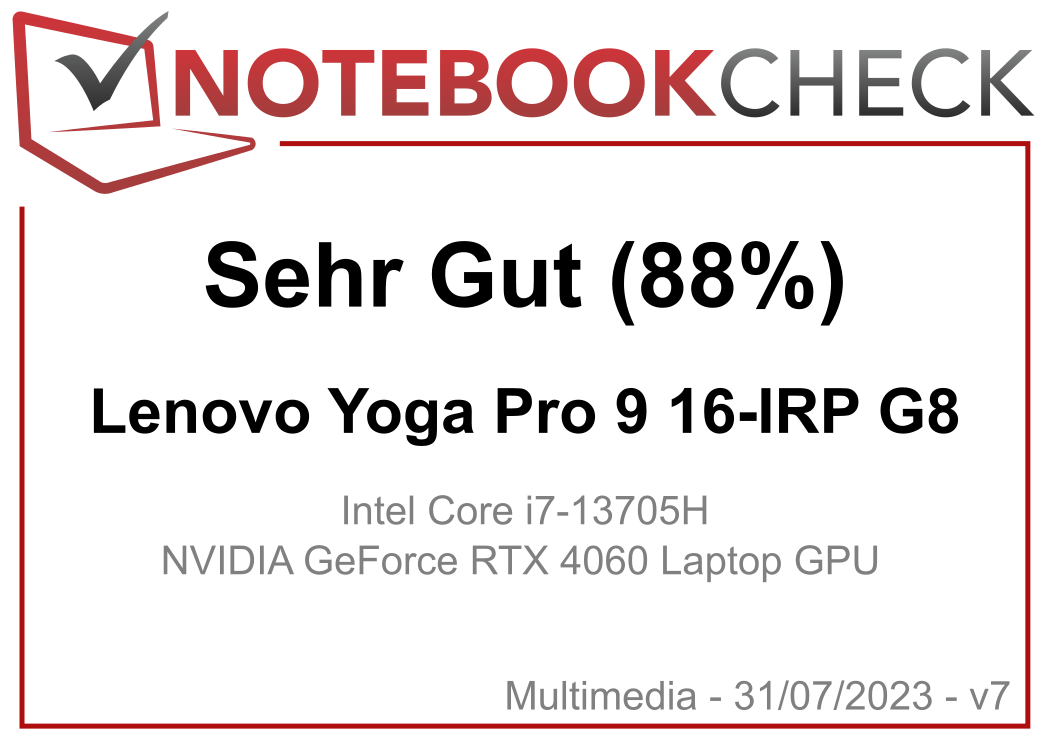 | 88.4 % v7 (old) | 07 / 2023 | Lenovo Yoga Pro 9 16-IRP G8 i7-13705H, GeForce RTX 4060 Laptop GPU | 2.2 kg | 18.2 mm | 16.00" | 3200x2000 | |