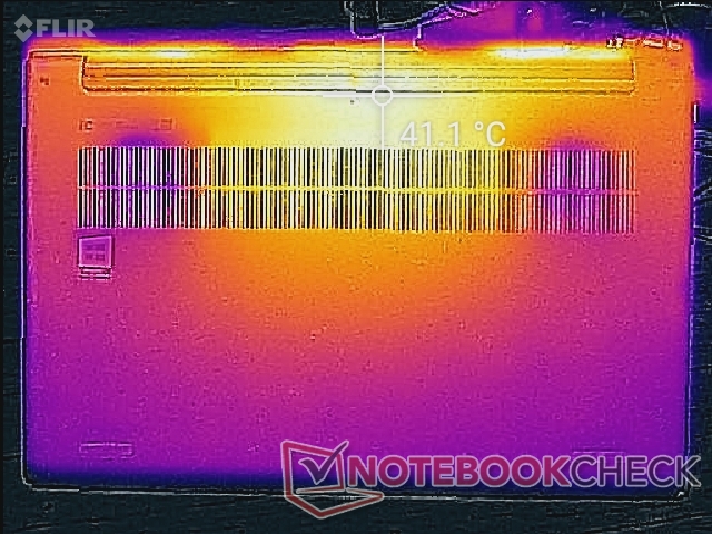 Die Oberflächentemperatur im Leerlauf auf dem Desktop ist viel zu warm - die Hotspots erreichen bis zu 41 °C (siehe Heatmap). Im Vergleich dazu ist das Spectre x360 15 mit GTX 1050 Ti Max-Q angenehm kühl - das erreicht im Leerlauf nur 29 °C. Die hohe Oberflächentemperatur des Lenovo entspricht der ungewöhnlich hohen Energieaufnahme im Leerlauf, auf die wir im Kapitel zur Energieaufnahme genauer eingehen werden.