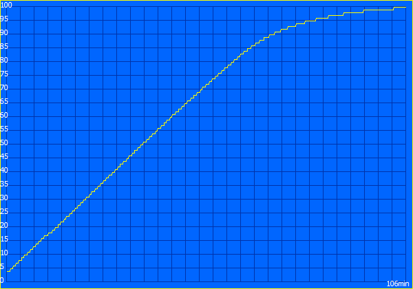 Die Kombination aus dem 70-Wh-Akku und den etwas höheren Verbrauchswerten ergibt ordentliche Laufzeiten, doch die Konkurrenten sind hier in der Regel ausdauernder. Im WLAN-Test mit 150 cd/m² sind es gerade einmal 10 Stunden und bei voller SDR-Helligkeit nicht mehr ganz 7 Stunden. Im Video-Test sind es sehr gute 16 Stunden, doch bei Last kann man den Akku in einer Stunde entleeren, da auch die Leistung nicht reduziert wird. Ein vollständiger Ladevorgang bei eingeschaltetem Gerät dauert 106 Minuten (80 % nach 60 Minuten).