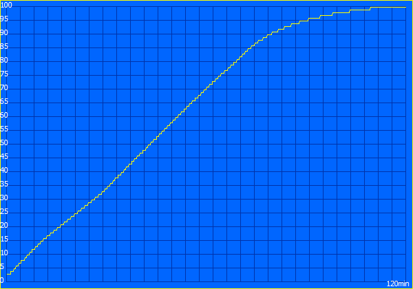 Wenn man sich ein HDR-Video mit der vollen Helligkeit ansehen möchte liegt die Laufzeit nur bei etwas mehr als 3 Stunden (196 Minuten) und unter Last ist nach etwas mehr als einer Stunde Schluss, wenn man den Höchstleistungsmodus verwendet. Ein vollständiger Ladevorgang benötigt bei eingeschaltetem Gerät ziemlich genau 2 Stunden, wobei 80 % der Kapazität nach 68 Minuten wieder zur Verfügung stehen.