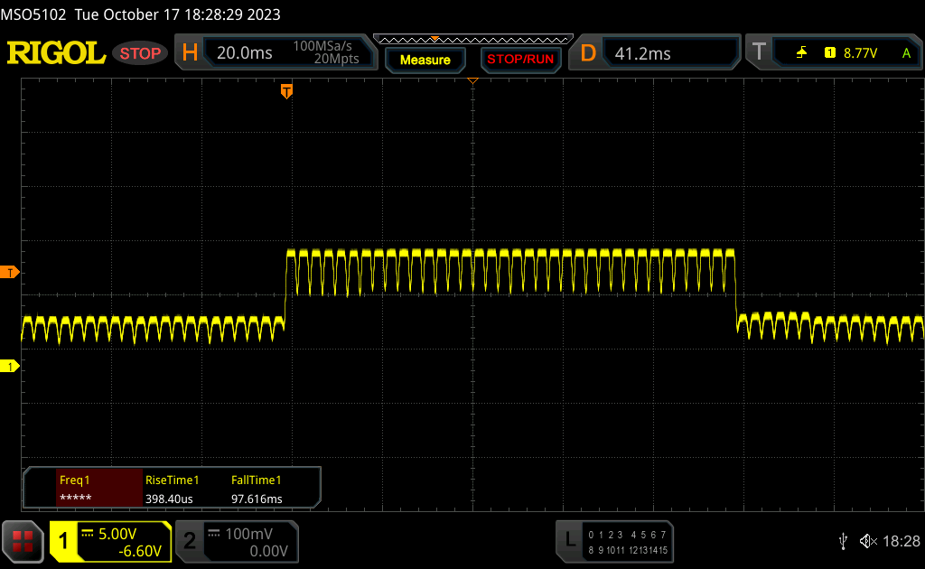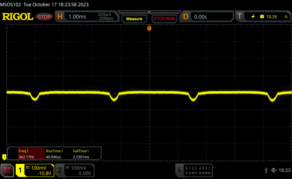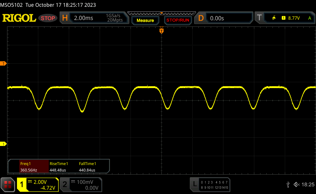 Wir ermitteln für dieses Panel eine PWM-Frequenz von 360 Hz, und zwar bei jedem Helligkeitslevel. Bei voller Helligkeit ist die Amplitude aber sehr gering und wir müssen die Messung auch sehr stark vergrößern, damit wir es überhaupt messen können. Auf jeden Fall kommt hier PWM zum Einsatz und wenn man empfindlich auf das Flackern reagiert, wird man mit diesem Display nur wenig Freude haben. In dieser Hinsicht hat Lenovo auch einen Nachteil gegenüber Asus (z. B. Zenbook S 13), wo neben DC-Dimming auch eine Software-Lösung gegen PWM-Flackern bei geringeren Helligkeitsleveln zum Einsatz kommt.