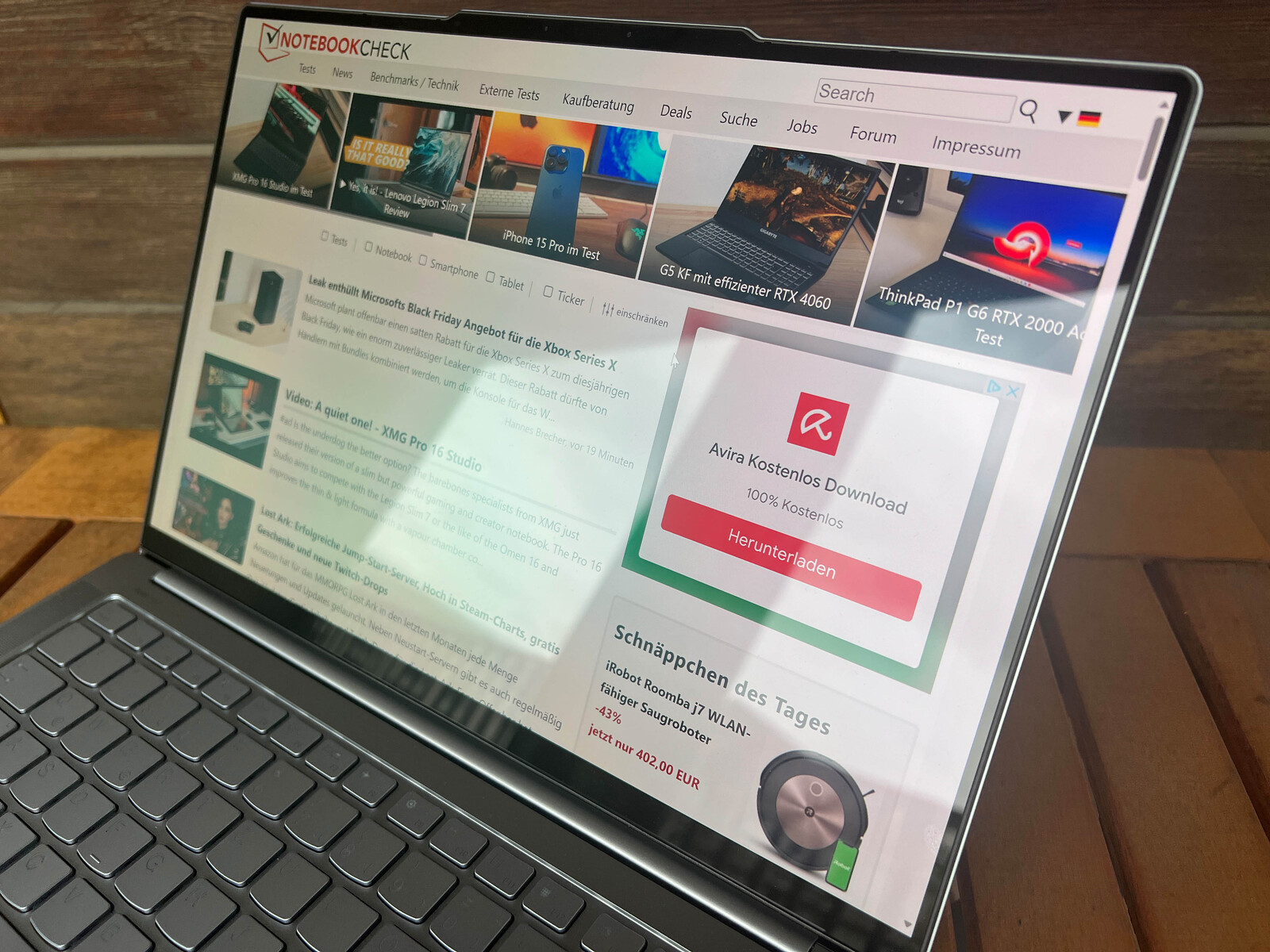 Der neue 2.9K-OLED-Bildschirm hinterlässt grundsätzlich einen sehr guten Eindruck. Die Probleme mit dem Gittereffekt der alten 2.8K-Versionen treten hier nicht mehr auf und Lenovo bietet sehr akkurate Farbprofile für P3 sowie sRGB. Allerdings gibt es auch Nachteile wie die geringe maximale HDR-Helligkeit sowie das konstante PWM-Flackern. Hier zeigt Asus bei seinen Laptops, wie man es besser machen kann. Das ändert trotzdem nichts an der tollen Bildqualität, im Alltag stört eher die stark spiegelnde Oberfläche.