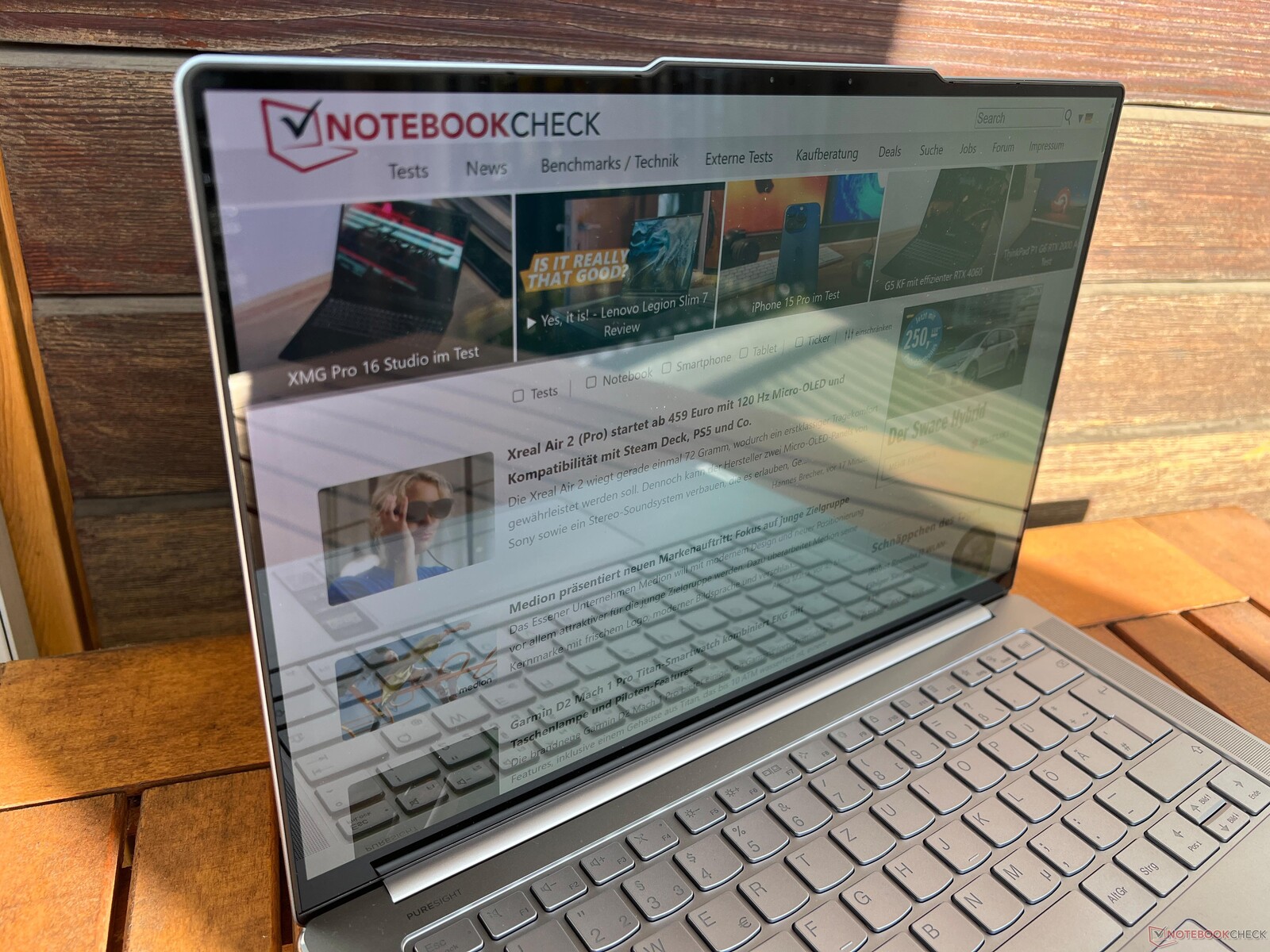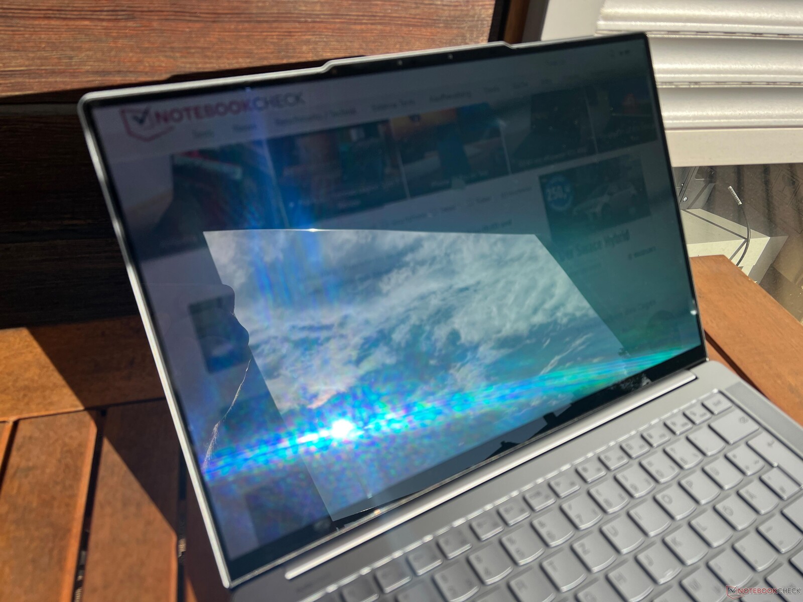 Bisher waren die Yoga-Modelle in der Regel mit den 2,8K-OLED-Bildschirmen ausgestattet, die aber mit einem leichten Gitter-Effekt (Moiré) zu kämpfen hatten, was vor allem bei hellen Inhalten und geringem Sitzabstand sichtbar war. Das neue Yoga Slim 7 14 G8 ist nun mit einem neuen 2.9K-OLED mit der Bildschirmdiagonale von 14,5 Zoll ausgestattet, der die etwas krumme Auflösung von 2.944 x 1.840 Pixeln bietet (16:10). Der Bildschirm spiegelt stark, unterstützt aber keine Touch-Eingaben.