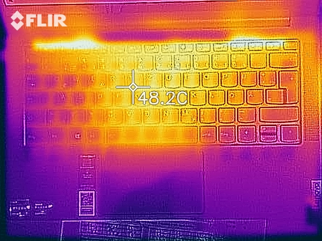 (+) Die Handballen und der Touchpad-Bereich sind mit gemessenen 28.3 °C kühler als die typische Hauttemperatur und fühlen sich dadurch kühl an.